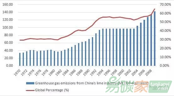 圖3:中國(guó)石灰生產(chǎn)過(guò)程的二氧化碳排放(當(dāng)量)