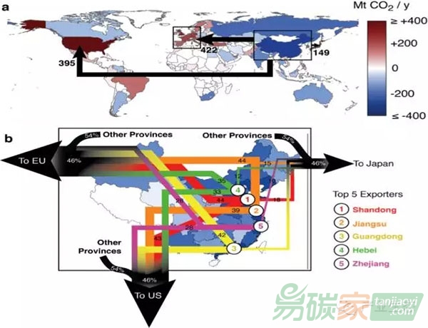 圖4:中國(guó)由于生產(chǎn)出口產(chǎn)品(主要出口至美國(guó)歐洲發(fā)達(dá)國(guó)家)而產(chǎn)生大量碳排放