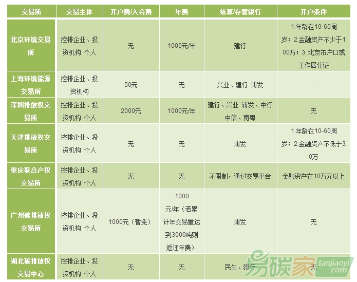 其中北京環(huán)境交易所規(guī)定,在北京環(huán)境交易所參與CCER交易的自然人,如果沒(méi)有開設(shè)碳排放權(quán)交易賬戶的個(gè)人,只參與CCER交易的,可單獨(dú)開立CCER戶,開戶費(fèi)為100元/戶。其他省市沒(méi)有特別規(guī)定。