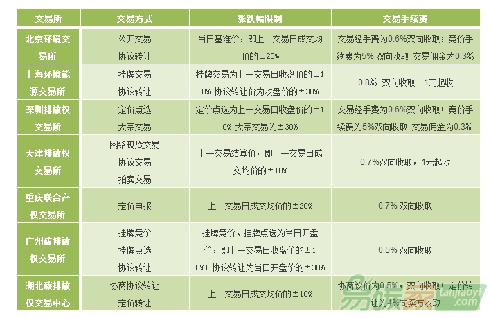 各試點(diǎn)碳市場(chǎng)的交易規(guī)則: