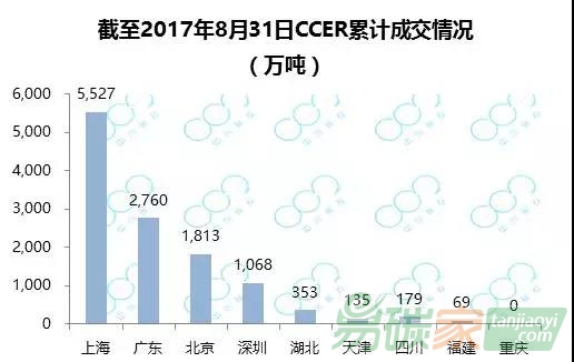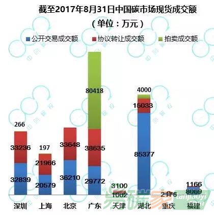 8月,8個區(qū)域碳市場共成交配額123萬噸,交易額0.15億元,分別比2017年7月下降了84%%和86%。截至2017年8月31日,一、二級現(xiàn)貨市場累計成交1.94億噸,成交額44.77億元。