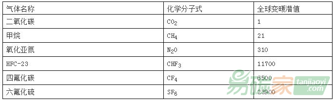碳排放有重要的作用。根據(jù)全球變暖潛值,我們就可以計(jì)算出在輻射強(qiáng)度上與某種溫室氣體質(zhì)量相當(dāng)?shù)亩趸嫉牧?。溫室氣體二氧化碳當(dāng)量等于給定氣體的質(zhì)量乘以它的全球變暖潛值。例如排放一噸甲烷所產(chǎn)生的溫室效應(yīng)相當(dāng)于排放21噸二氧化碳的作用效果。
