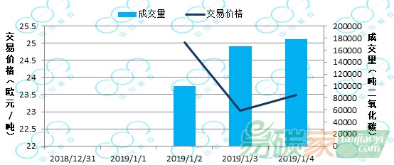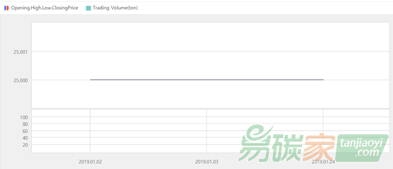 2018年12月31日至2019年01月06日,韓國碳市場價格為25000韓元/噸(約22.15美元/噸)。