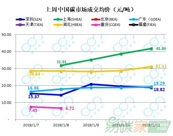 2019年1月7日-1月11日,相比配額市場無成交的情況,北京市場旱現(xiàn)數(shù)筆CCER交易,CCER累計(jì)成交量位列各試點(diǎn)之首,達(dá)95.4萬噸;同期,湖北市場一改近期CCER交易低潮的狀態(tài),累計(jì)成交16.9萬噸。上周,上海CCER市保持活躍,成交量為77.4萬噸;廣東和