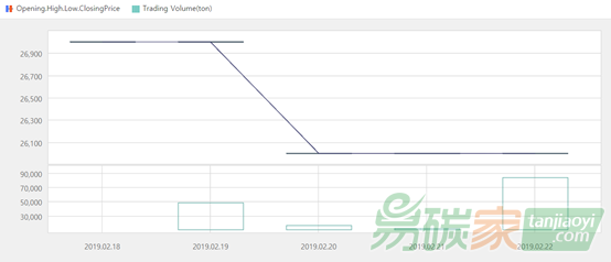 新西蘭碳市場2019年02月18日至2019年02月24日,新西蘭碳市場價(jià)格在25.05-25.30美元/噸之間波動(dòng)。