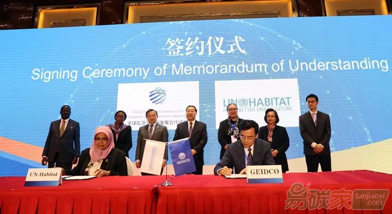 ▲全球能源互聯(lián)網(wǎng)發(fā)展合作組織與聯(lián)合國人居署簽署合作協(xié)議