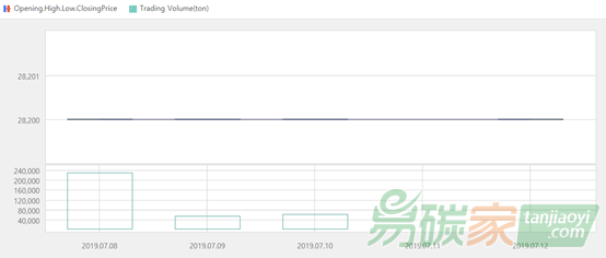 韓國(guó)碳市場(chǎng)2019年07月08日至2019年07月14日,韓國(guó)碳市場(chǎng)價(jià)格在穩(wěn)定在2820韓元/噸(約23.97美元/噸)。