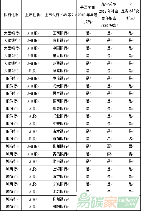 表2 2018年度48家上市銀行發(fā)布年報(bào)和社會(huì)責(zé)任報(bào)告/ESG報(bào)告情況