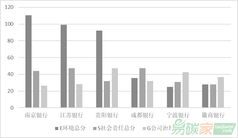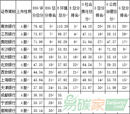 江蘇銀行與貴陽銀行的ESG總分位列前十,而其余城商行的得分處于中下游水平,ESG表現(xiàn)差異較大。