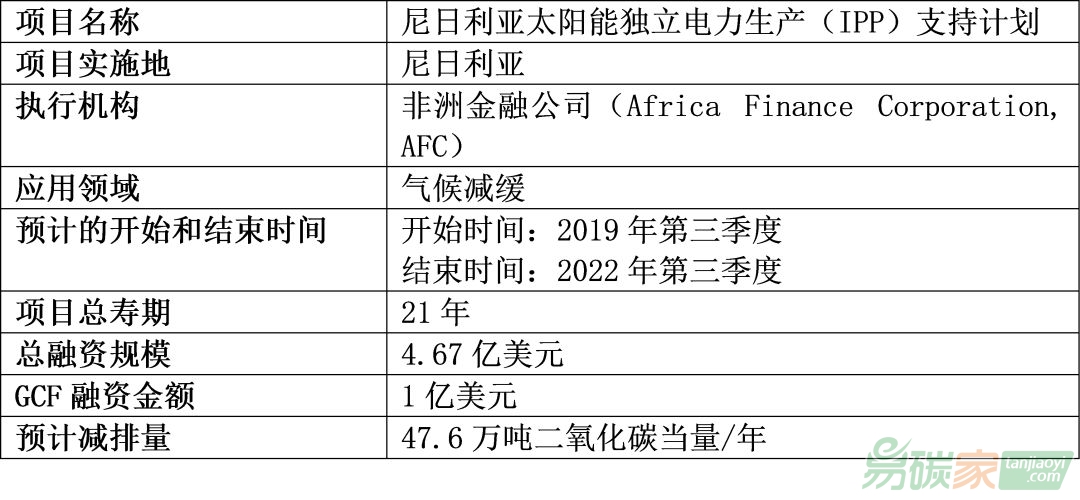 綠色氣候基金(GCF)是由“聯(lián)合國氣候變化框架公約”(UNFCCC)締約方的194個國家建立的,作為“公約”財務(wù)機制的一部分,旨在為發(fā)展中國家減緩和適應(yīng)氣候變化提供資金。目前GCF從43個國家共籌集了103億美金,其項目投資通過執(zhí)行機構(gòu)進行,已經(jīng)授權(quán)了88個執(zhí)行機構(gòu)。本文通過分析GCF在尼日利亞支持的太陽能獨立