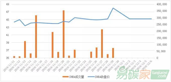 碳排放交易配額清繳截止期的結(jié)束,SHEA活躍度顯著下降,市場(chǎng)短期內(nèi)沒(méi)有剛性需求,觀望并等待明年相關(guān)