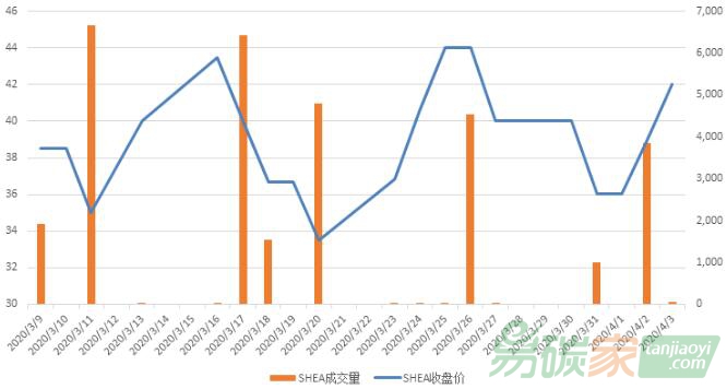碳排放權(quán)交易相關(guān)工作安排的通知》,決定根據(jù)疫情發(fā)展態(tài)勢和實際工作需要,酌情推遲企業(yè)2019年度碳排放報告、核查及配額履約時間,但由于存在履約預(yù)期,SHEA現(xiàn)貨市場進入3月以來,保持每周連續(xù)成交的狀態(tài)。本周除周一、周三以外,SHEA每日均有交易達成,其中周四成交量最大,為3,850噸。價格方面,本周SHEA價格低開高走,繼周二小幅回落至36.01元/噸之后,周四、周五連續(xù)上揚,報收42.00元/噸,較上周五環(huán)比上漲2.00元/噸。