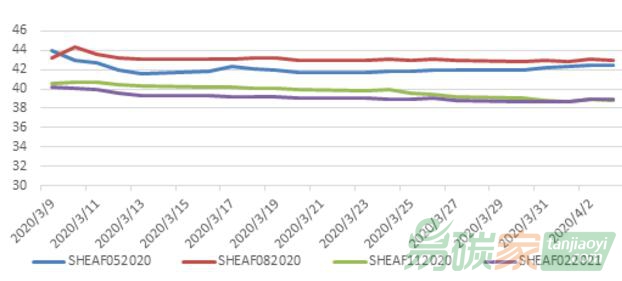 本報告期內(nèi)(2020年3月30日至2020年4月3日),上海碳配額遠期中央對手清算業(yè)務(wù)保持平穩(wěn)運行。遠期市場四個流通協(xié)議價格小幅波動,近端與遠端協(xié)議走勢稍有分歧。其中,2020年5月協(xié)議期末結(jié)算價42.48元/噸,較上周五環(huán)比上漲0.57元/噸,2020年8月協(xié)議期末結(jié)算價42.93元/噸,較上周五環(huán)比下跌0.06元/噸。