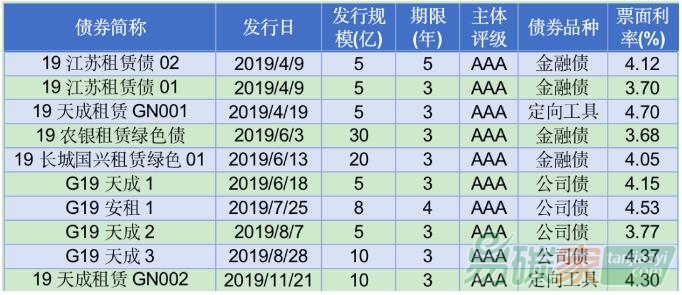 表 1 2019年融資租賃企業(yè)綠色債券發(fā)行情況