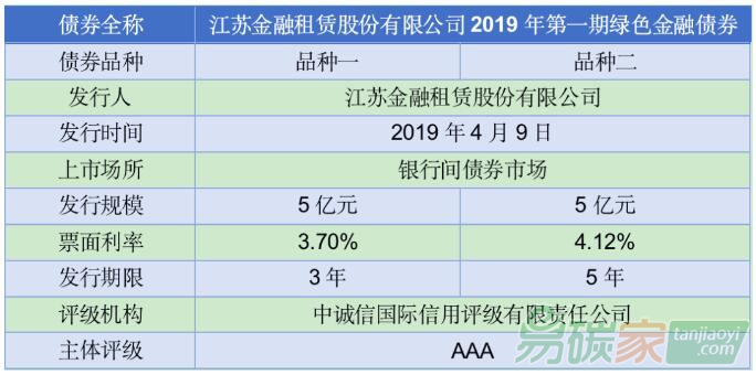 2019年4月,江蘇金融租賃股份有限公司發(fā)行兩個(gè)品種共計(jì)10億元的綠色金融債券,募集資金全部用于9個(gè)光伏發(fā)電項(xiàng)目。江蘇金融租賃成立于1988年,是全國最早的專業(yè)性金融租賃公司之一,盈利能力位居行業(yè)前列。