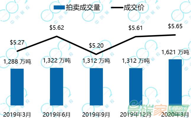2020年3月,RGGI碳市場舉行了本年第一次拍賣,拍賣配額現(xiàn)貨1621萬噸全部成交,成交價5.65美元每噸,較去年同期上漲7%。