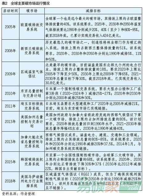 節(jié)能減排的政策工具, 碳交易已逐漸成為全球應對氣候變化政策的核心支柱(全球目前主要碳市場運