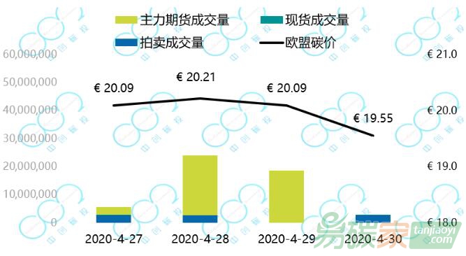2020年4月27日至2020年4月30日,歐盟碳價在19.55-20.21歐元每噸之間波動。