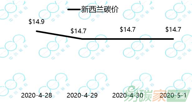 2020年4月28日至2020年5月1日,新西蘭碳價小幅下跌至14.7美元。