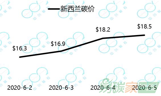2020年6月2日至2020年6月5日,新西蘭碳價(jià)自16.3美元上漲至18.5美元每噸左右。