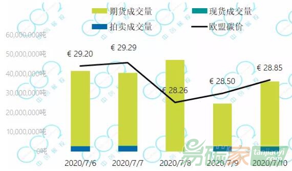 2020年7月6日至7月10日,歐盟碳價(jià)本周在28-29歐元附近波動(dòng),處于今年高位。有分析師提醒當(dāng)心歐盟碳價(jià)回落,特別是如果歐洲受到第二波疫情的影響。