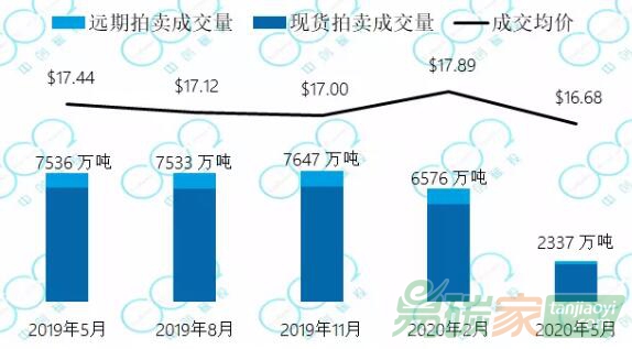 加州-魁北克碳市場(chǎng)的初始配額發(fā)放以拍賣(mài)為主,每個(gè)季度舉行一次拍賣(mài)。2020年拍賣(mài)基價(jià)設(shè)定于16.68美元,比去年提高了7%。受疫情影響,美國(guó)大量企業(yè)停工,第二季度配額拍賣(mài)成交慘淡,拍賣(mài)成交量?jī)H為供應(yīng)量的35%。