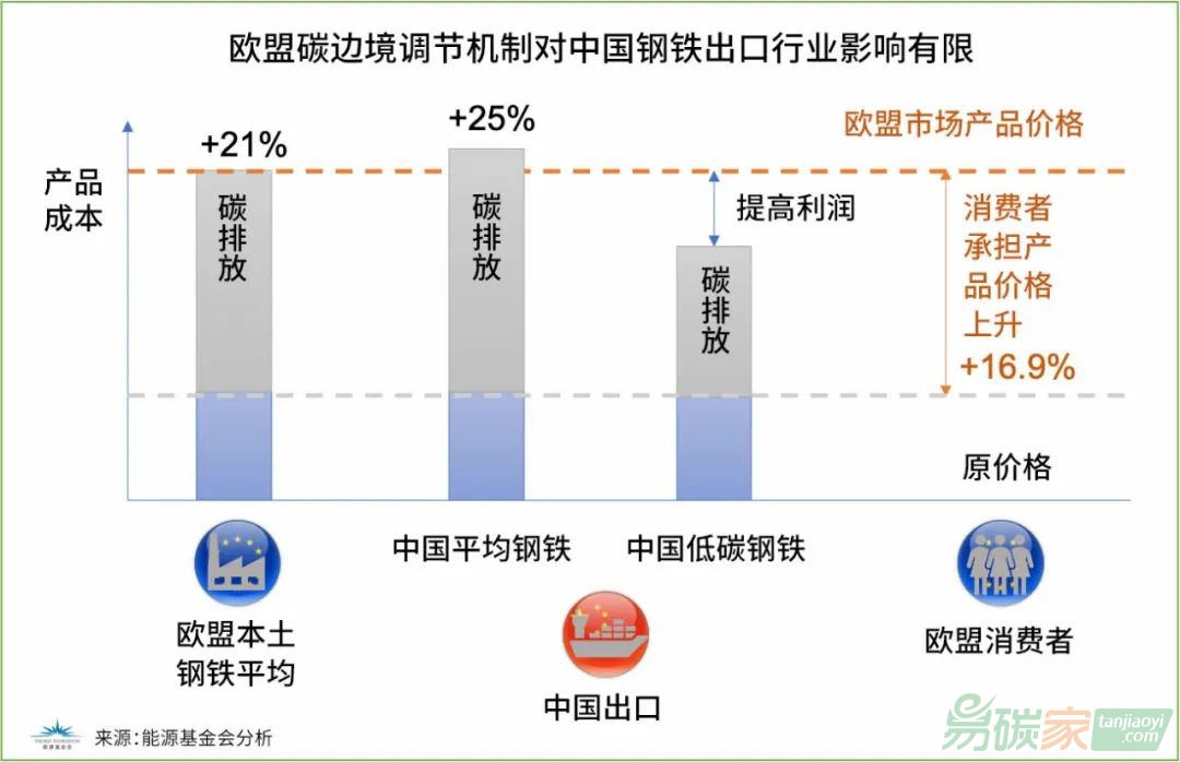 碳排放較低的鋼鐵可以按照實(shí)際碳排放征收碳邊境調(diào)節(jié)稅,從而增加低碳鋼鐵的競(jìng)爭(zhēng)力。