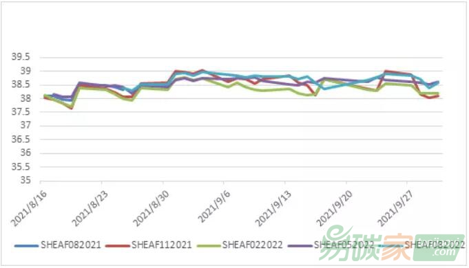 本報(bào)告期內(nèi)(2021年9月22日至2021年9月24日),上海碳配額遠(yuǎn)期(SHEAF)中央對(duì)手清算業(yè)務(wù)保持平穩(wěn)運(yùn)行。本周遠(yuǎn)期市場(chǎng)價(jià)格整體小幅下滑,其中2021年11月協(xié)議期末結(jié)算價(jià)為38.09元/噸,較上周五9月24日下跌0.91元/噸,2022年2月協(xié)議期末結(jié)算價(jià)38.20元/噸,較上周五9月24日下跌0.34元/噸。