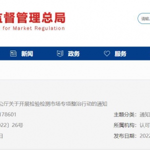 市場(chǎng)監(jiān)管總局辦公廳關(guān)于開(kāi)展檢驗(yàn)檢測(cè)市場(chǎng)專(zhuān)項(xiàng)整治行動(dòng)的通知市監(jiān)檢測(cè)發(fā)〔2022〕26號(hào)各省、自治區(qū)、直轄市和新疆生產(chǎn)建設(shè)兵團(tuán)市場(chǎng)監(jiān)管局(廳、委):為加強(qiáng)檢驗(yàn)檢測(cè)機(jī)構(gòu)監(jiān)管,嚴(yán)肅查處不實(shí)和虛假檢驗(yàn)檢測(cè)等違法違規(guī)行 ...